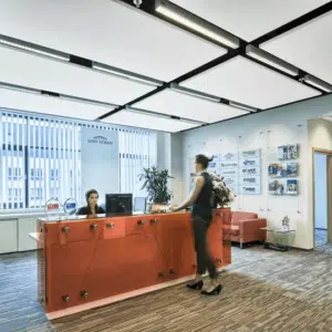 können über die Connect justierbare Seilabhängung oder die starre Direktbefestigung montiert werden. Unsere Deckensegel aus recyceltem Glas mit pflanzenbasierendem Bindemittel haben eine hochwertige Oberfläche mit farbbeschichteten Kanten, die eine einfache Montage mit dem patentierten Zubehör ermöglichen. Durch die hohe Steifigkeit der Deckensegel können zusätzliche Durchdringungen für übereinanderliegende Deckensegel hergestellt werden. Auch Deckenleuchten können problemlos durchgeführt oder mithilfe von Leuchtenausschnitten in die Deckensegel integriert werden.